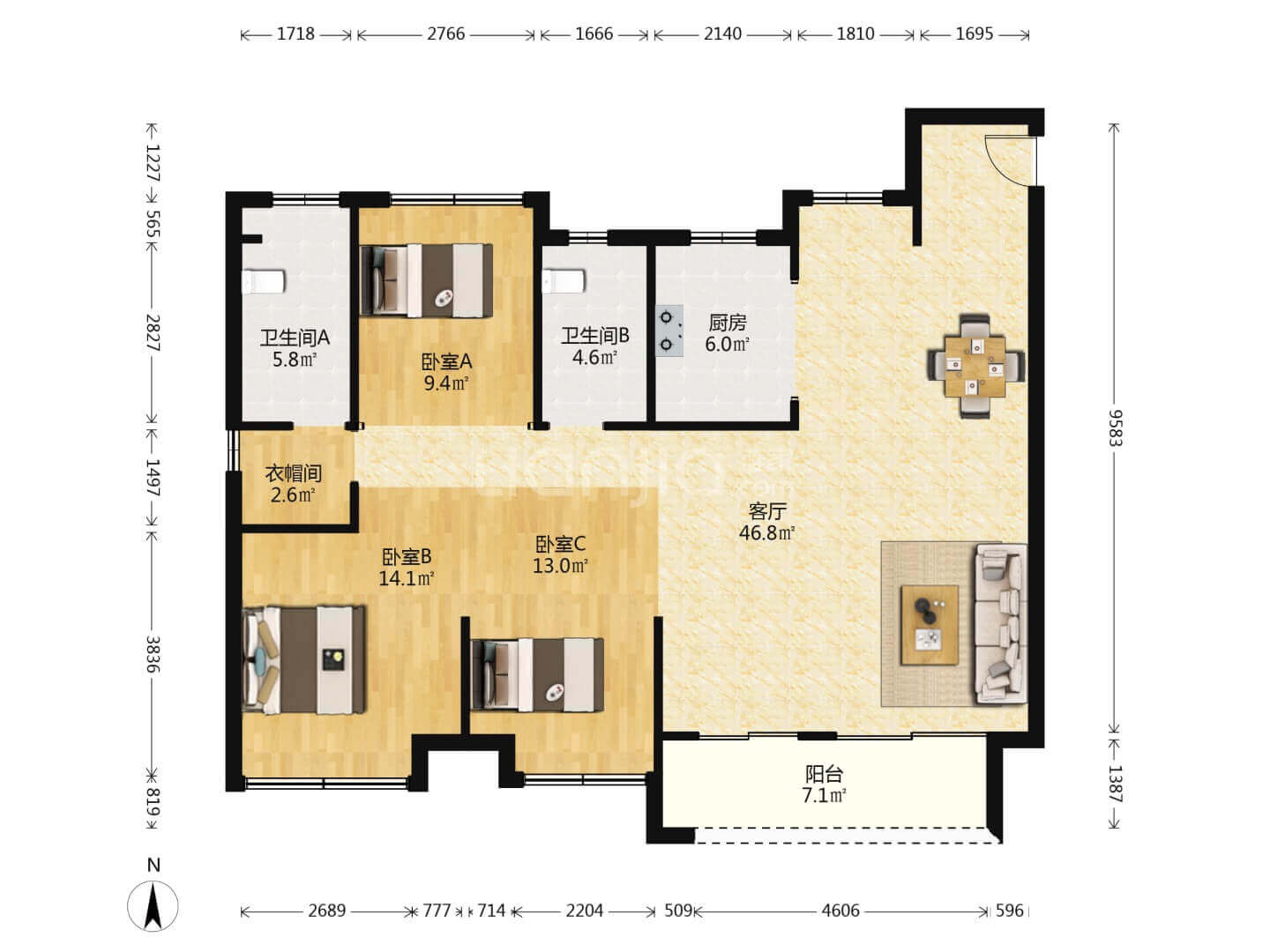 刷乳胶漆,客厅和卧室的墙面可选择浅暖色
